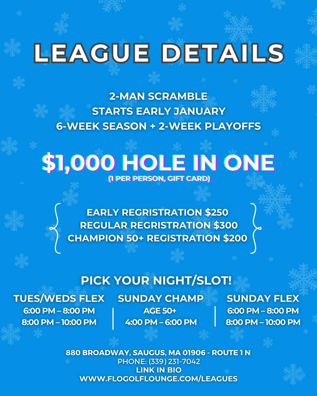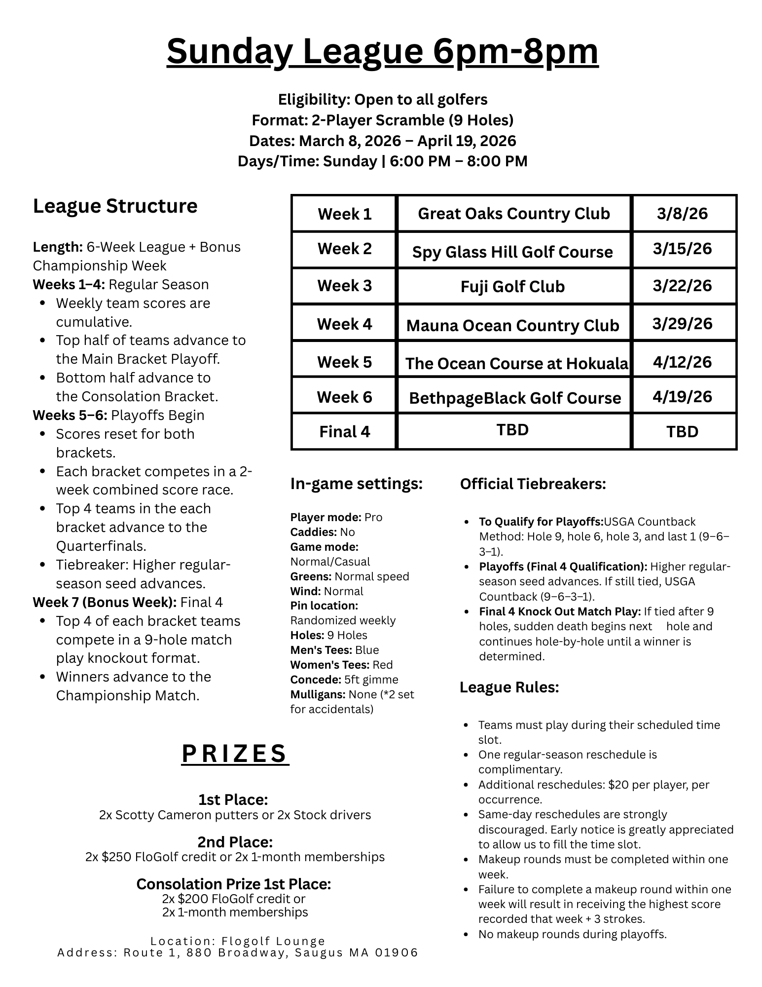 Pricing includes the entire duration of the league and a bonus week for finals.