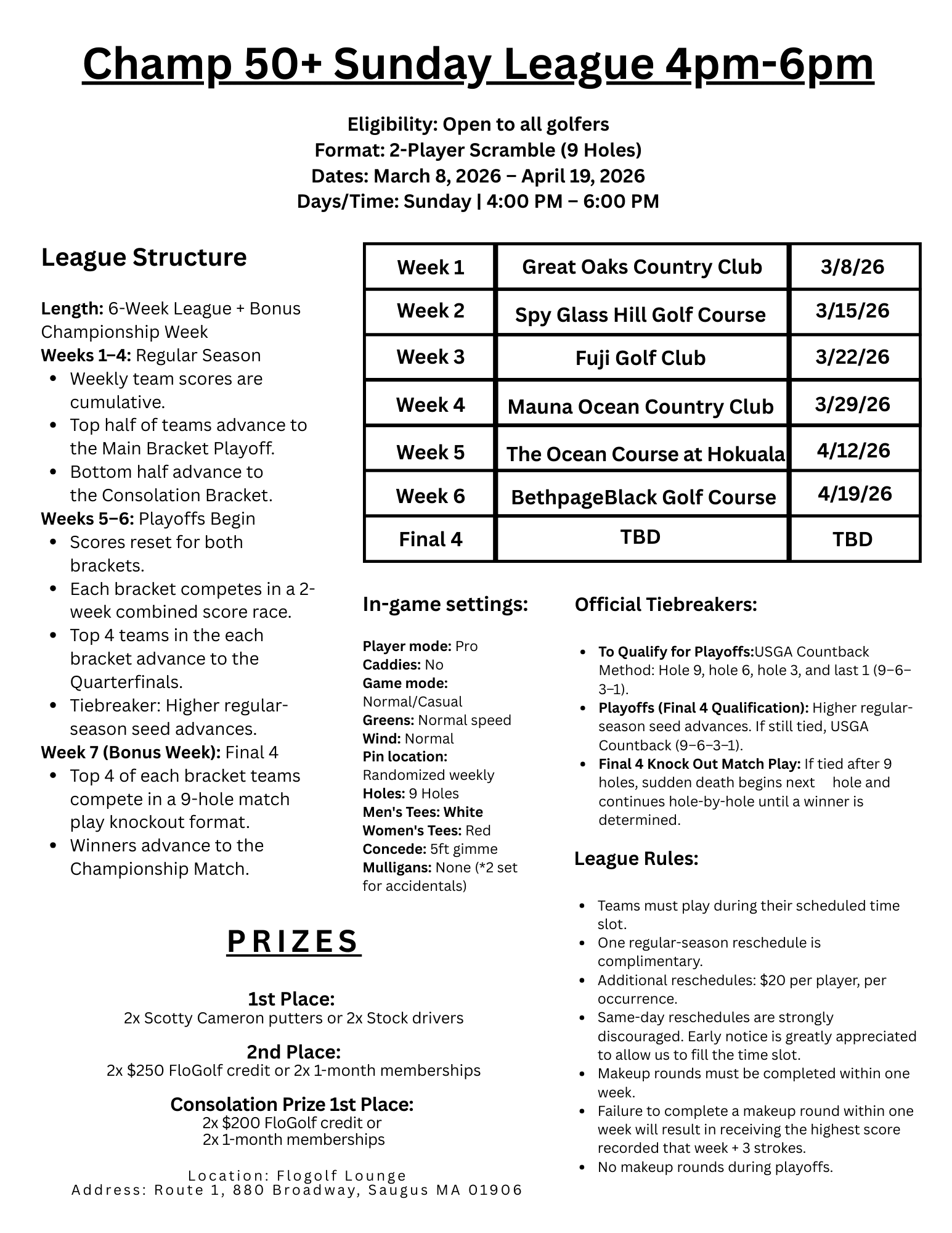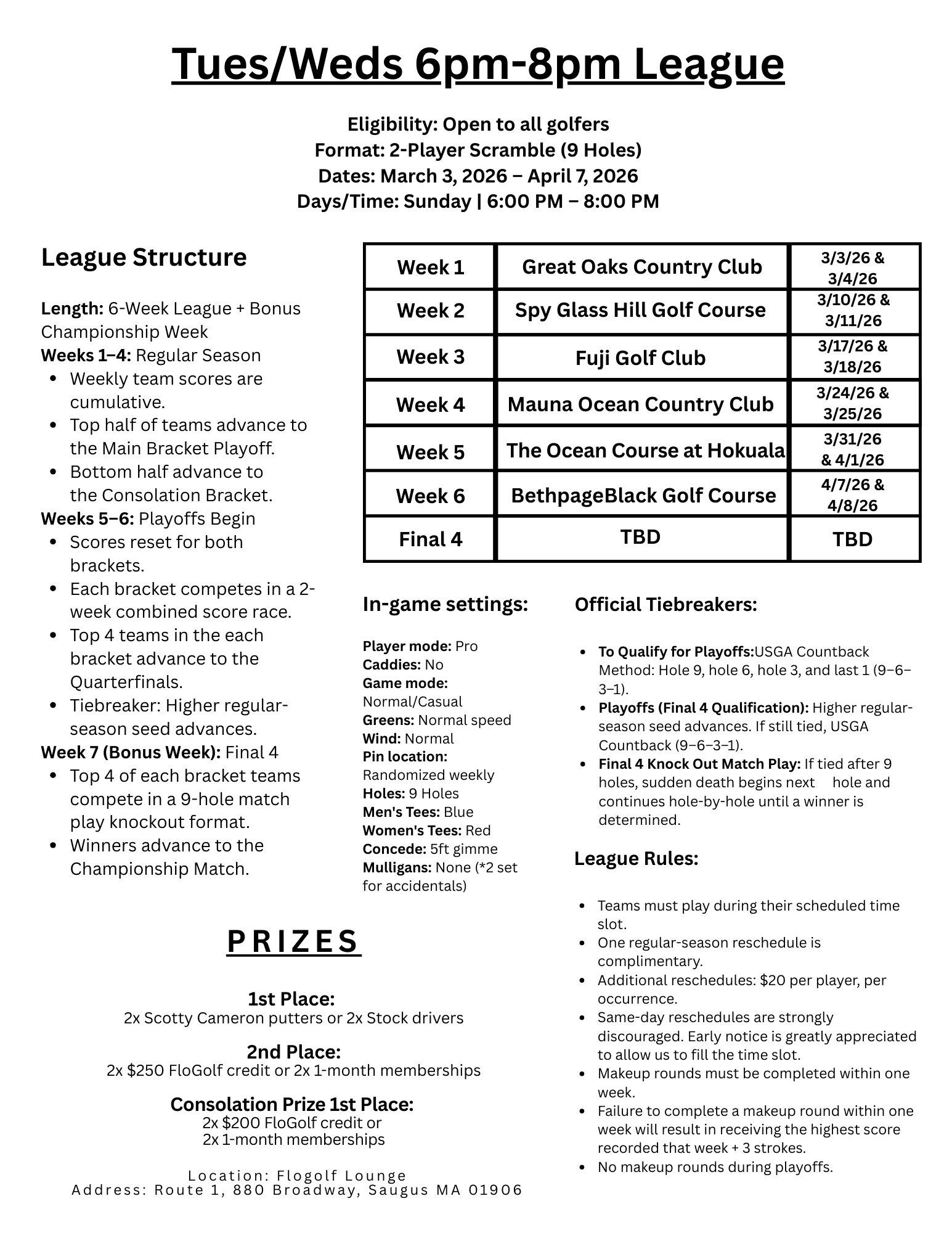 You will be paired with league mates each week. Each bay will accommodate 4 golfers.